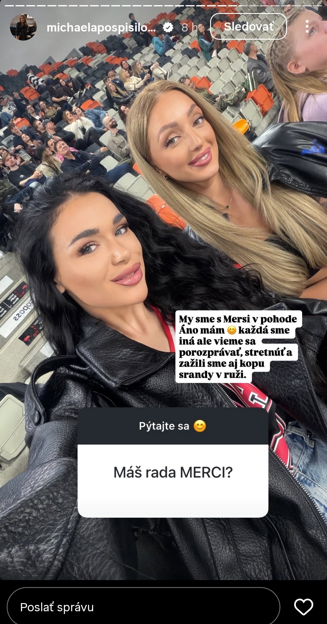 Miška ponúkla o čosi pikantnejšie odpovede, ktoré divákov donútili spochybniť priateľstvá, ktoré vidia na obrazovkách. Napríklad na otázku, kto je jej najlepšia kamarátka z Ruže pre nevestu, odpovedala: „Ťažko povedať. Všetky baby boli super, ale s niektorými máme viac spoločného ako hlavné hodnoty a s inými zas humor. Každá sme boli iná, ale s jednou som si sadla úplne najviac tam v šou. Sleduj, dozvieš sa.“