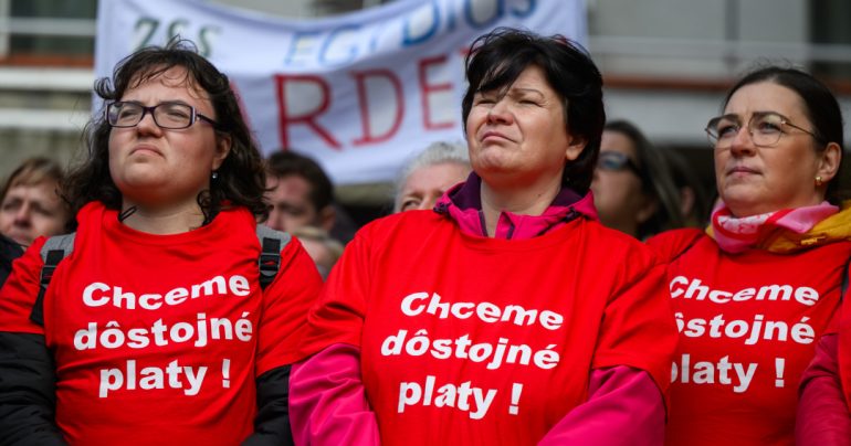 Zamestnanci zariadení sociálnych služieb vo štvrtok v Bratislave protestovali pre nespokojnosť s ich platovým ohodnotením či pracovnými podmienkami. Vyzývajú na podpis kolektívnej zmluvy, ktorú Združenie miest a obcí Slovenska a Samosprávne kraje Slovenska odmietajú podpísať pre nedostatok financií.