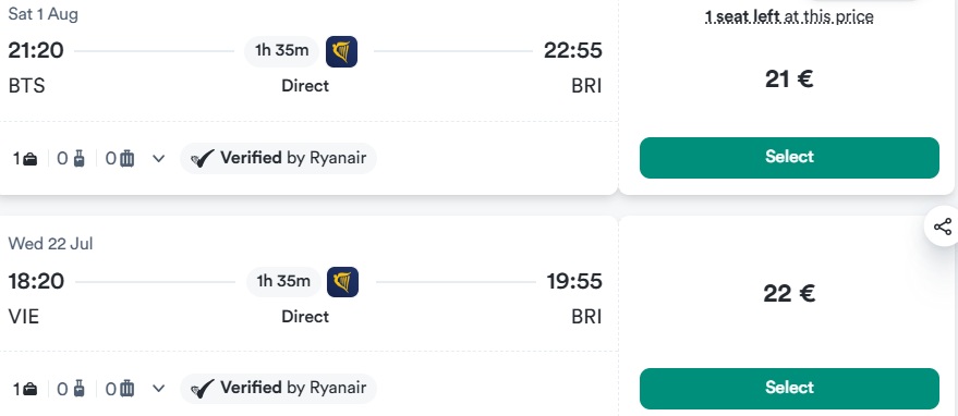 Na platforme Kiwi sme vyfiltrovali jednosmerné letenky z Bratislavy, Viedne a Budapešti kamkoľvek v termínoch počas celého júla a augusta. A našli sme letenky od 21 eur, ktoré sú aktuálne tými najlacnejšími, ktoré si k moru môžete uloviť. Navyše, rovno k obľúbenému Jadranskému.