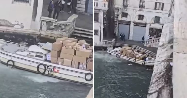 Talianka tuniského pôvodu ukradla v Benátkach doručovací čln a narazila s ním do Mosta Rialto zo 16. storočia, pričom poškodila kamennú balustrádu a balíky sa dostali do Canala Grande.