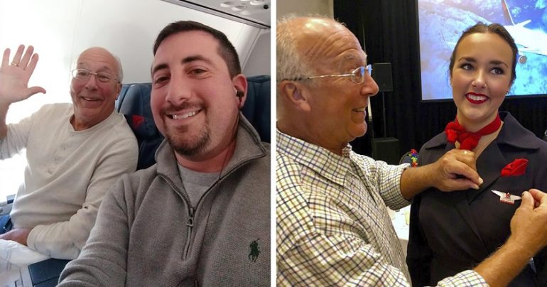 Toto obrovské otcovské gesto bolo zdieľané po celom svete vďaka Mikeovi Levymu, ktorý sedel s Halom Vaughanom počas jedného z letov.
