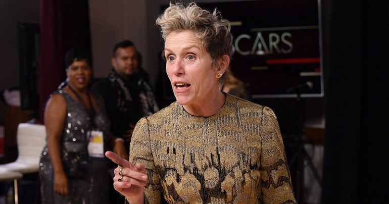 Francis McDormand získala Oscara v kategórii najlepšia herečka. V poradí ide o druhé ocenenie akadémie, ktoré získala. Prvé bolo za film Fargo v réžii bratov Coenovcov a to aktuálne bolo za film Tri billboardy kúsok za Ebbingom, za ktorým stál režisér Martin McDonagh. Pri svojom ďakovnom príhovore vzdala hold bratom Coenovcom, svojej sestre Dorothy, všetkým v sále a samotnému režisérovi.