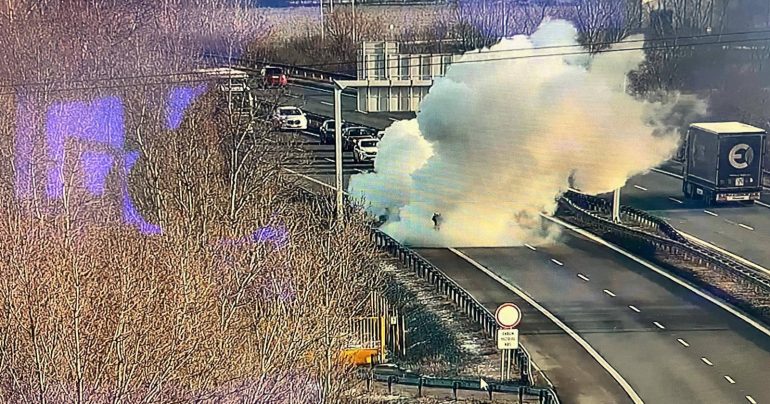 Na diaľnici D1 na 93,4 kilometri pred zjazdom na Hornú Stredu v smere na Bratislavu je dopravné obmedzenie z dôvodu dokumentovania nedávneho požiaru motorového vozidla.