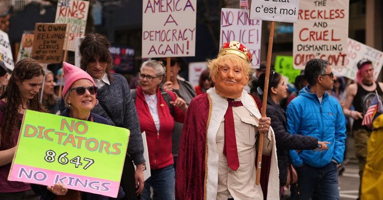 Milióny ľudí sa v sobotu zhromaždili v mestách po celých Spojených štátoch na protestoch ľudového hnutia „No Kings“, na ktorých demonštrovali proti prezidentovi Donaldovi Trumpovi pre jeho autoritársky štýl vládnutia, tvrdú imigračnú politiku a vojnu s Iránom.