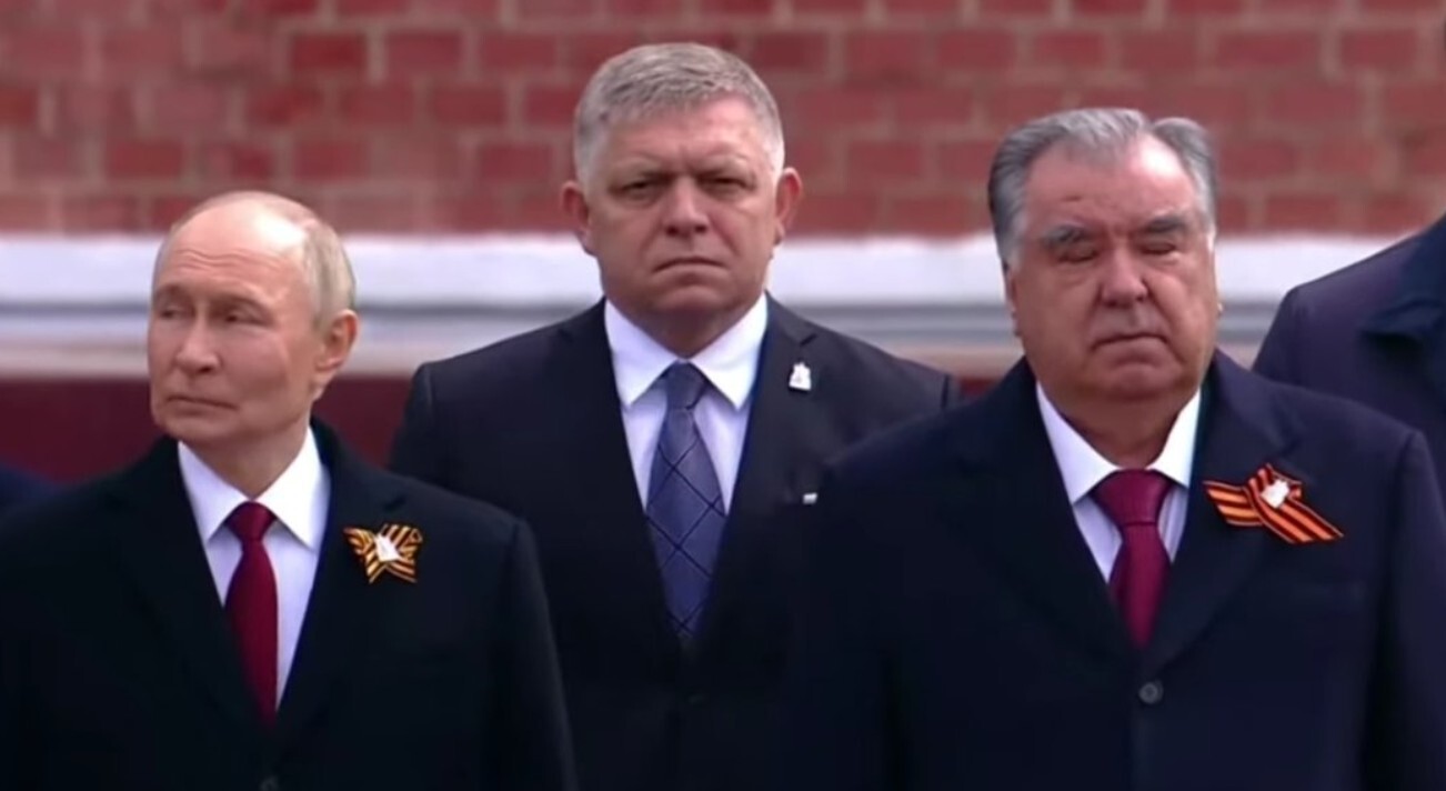 9. mája 2025 Fico sa opäť stretol s Putinom: Pred prehliadkou na Červenom námestí si s ním podal ruku