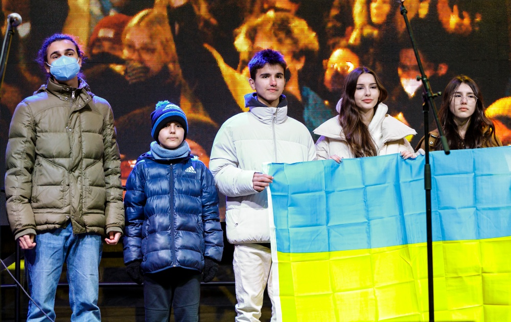11. marca 2022 V Bratislave sa konal ďalší protest proti vojne. Na pódiu bol aj 11-ročný utečenec z Ukrajiny (GALÉRIA)