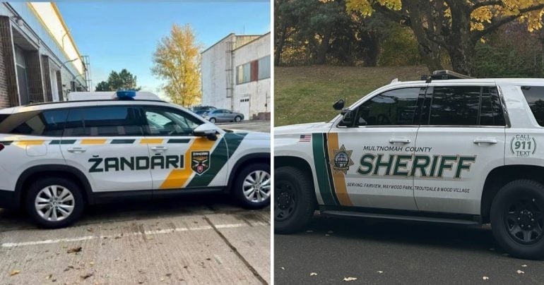 Vizuál služobných áut je teda už známy a pomerne výrazne sa odlišuje od bežnej polície. Autá majú na streche červeno-modré majáky, no na bokoch majú nalepené žlto-zelené polepy s logom a s veľkým zeleným nápisom „žandári“, bez nejakého telefónneho čísla či ďalšieho sloganu. Dizajn pritom náramne pripomína polep áut, na ktorých jazdia šerifovia v USA, konkrétne v Multnomah County v Oregone.