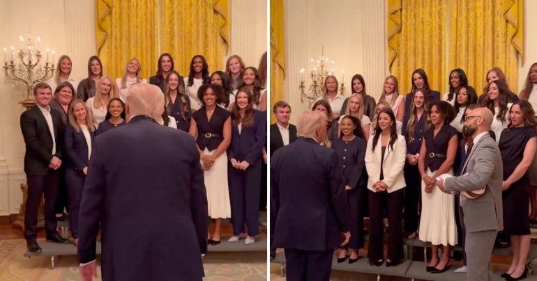 Ako upozornil Denník N, snímku zverejnil na sociálnej sieti X komentátor Ron Filipkowski. Zachytáva ženský tenisový tím z univerzity v štáte Georgia, ktorý bol v utorok pozvaný do Bieleho domu pri príležitosti víťazstva v turnaji organizovanom Národnou vysokoškolskou atletickou asociáciou (NCAA).