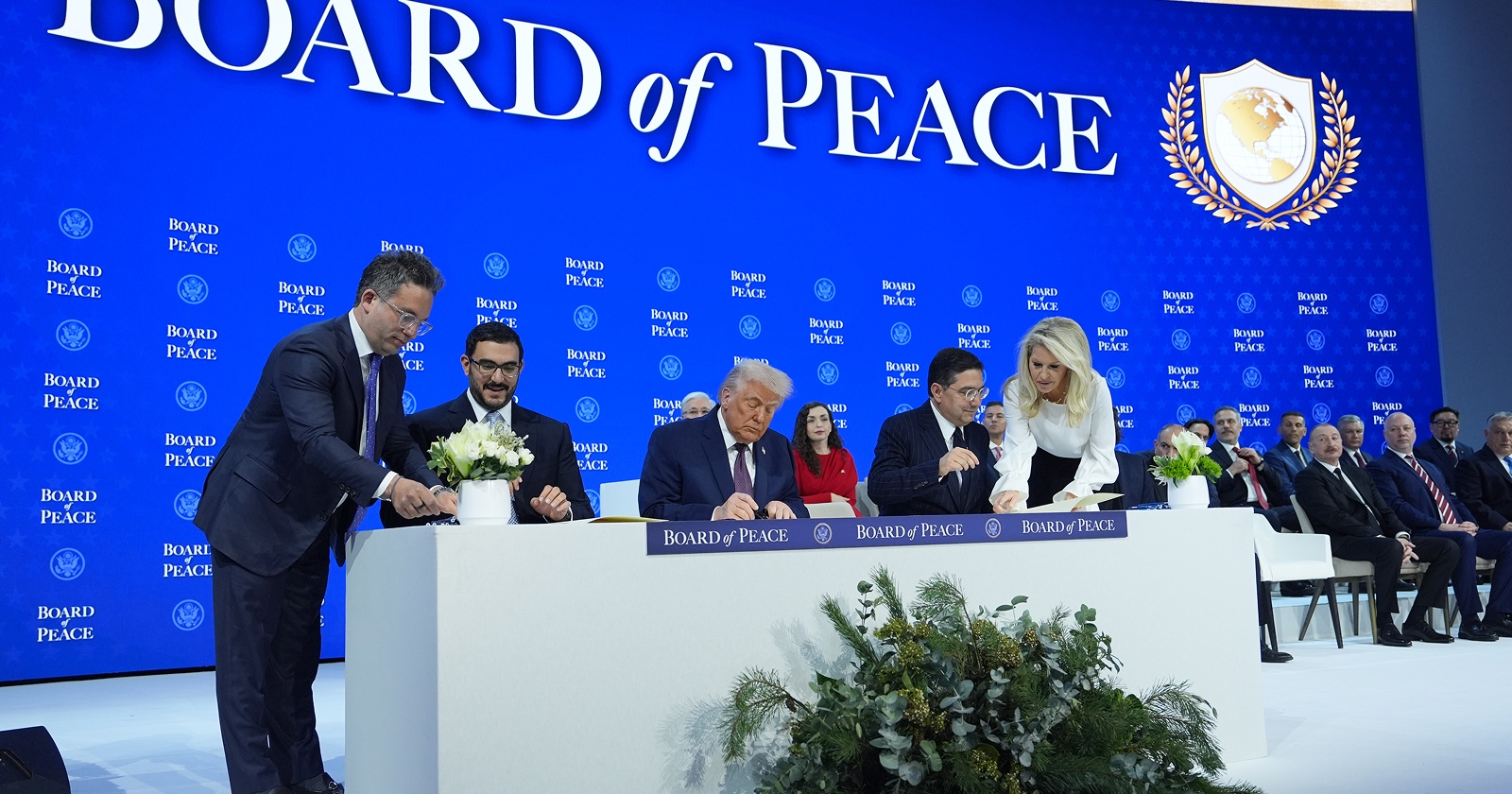 Na ceremónii boli prítomné približne dve desiatky svetových lídrov vrátane azerbajdžanského prezidenta Ilhama Alijeva, maďarského premiéra Viktora Orbána, bulharského premiéra Rosena Žeľazkova, argentínskeho prezidenta Javiera Mileia či indonézskeho prezidenta Prabowa Subianta. Krajiny, ktoré budú chcieť byť trvalými členmi, budú musieť prispieť najmenej miliardou dolárov. Inak budú môcť získať len dočasné trojročné členstvo.