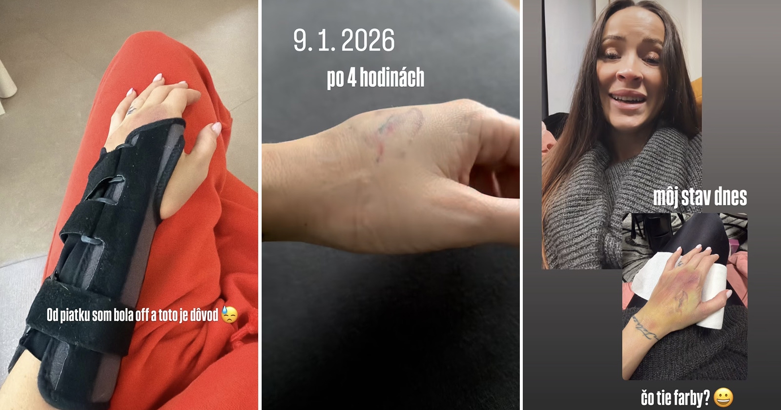 Sympatickej mladej žene sa stalo niečo, čo by nechcel nikto zažiť. Najhorší je na tom fakt, že svoju presnú diagnózu nepozná. Všetko to začalo zverejnenou fotografiou ľavej ruky v ortéze, ku ktorej napísala, že ide o dôvod, prečo ju priaznivci nemohli zastihnúť v online svete.